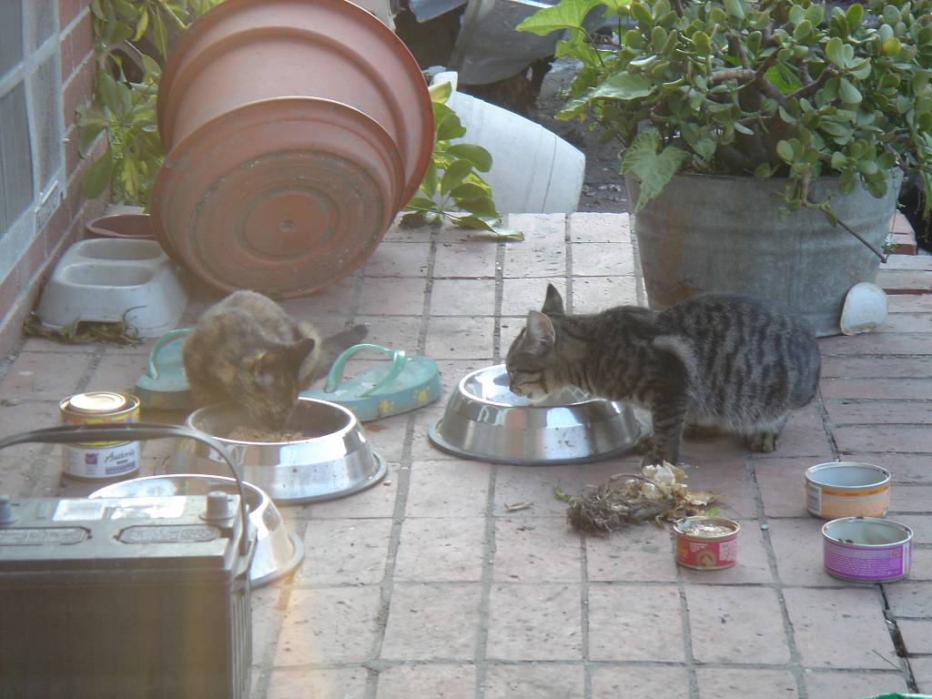 These cats were too skittish to capture, but we left them lots of food and water.