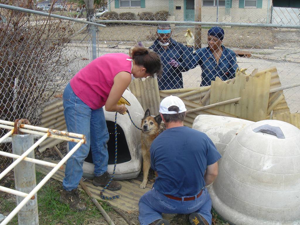 Mary stuck her head inside the igloo and put a leash around the dog's neck.
