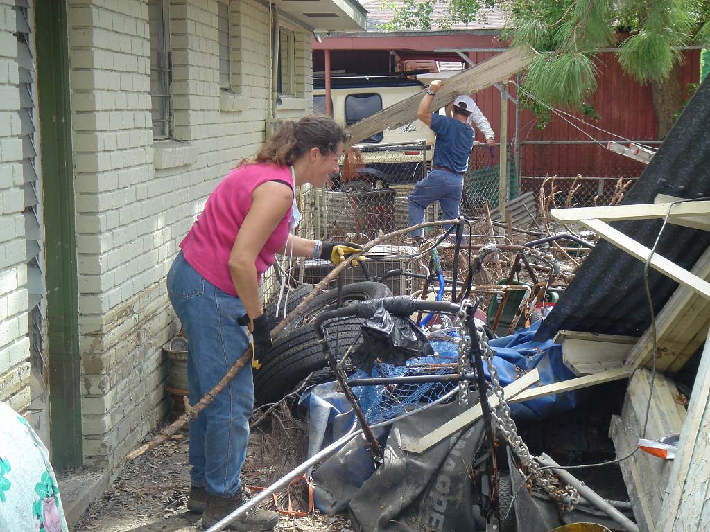 We had the dog trapped in this back yard, but he kept hiding in this pile of debris.
